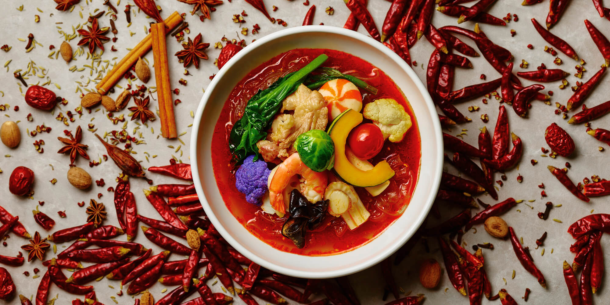 しっかりとした辛味・香り豊かなスパイスと素材の旨みを引き出した『麻辣湯スープ』胡麻の豊かな風味としびれる花椒の刺激、唐辛子の辛さが一体となった『麻辣坦々スープ』トムヤムの爽やかな酸味と香り、麻辣の辛さが融合した女性にも人気のアジアの香り『麻辣トムヤムスープ』をはじめ、リニューアル記念として新作スープが続々新登場!女性に人気のトマトの自然な甘みと旨味をしっかり感じられる辛さや痺れが苦手な方でも楽しめる『麻辣トマトスープ』たっぷりのスパイスや痺れ、旨味を感じさせる辛口派の大人の『麻辣スパイスcurryスープ』花椒のしびれる辛さと黒酢のほどよい酸味を楽しむ、大人のための『麻辣サンラータンスープ』などなど…