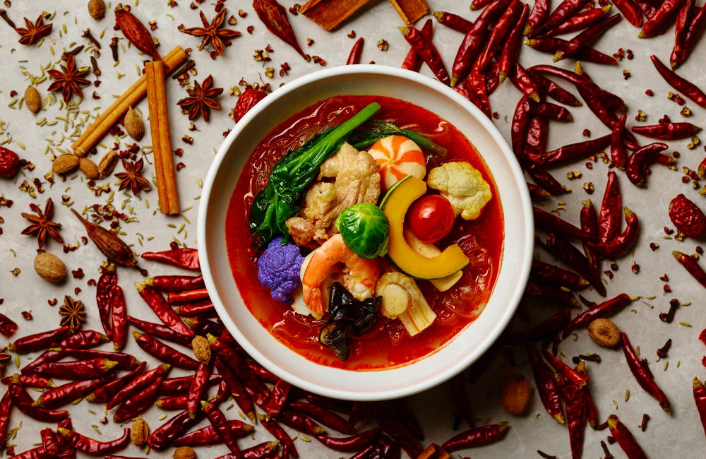 女性に人気のトマトの自然な甘みと旨味をしっかり感じられる辛さや痺れが苦手な方でも楽しめる『麻辣トマトスープ』たっぷりのスパイスや痺れ、旨味を感じさせる辛口派の大人の『麻辣スパイスcurryスープ』花椒のしびれる辛さと黒酢のほどよい酸味を楽しむ、大人のための『麻辣サンラータンスープ』などなど…